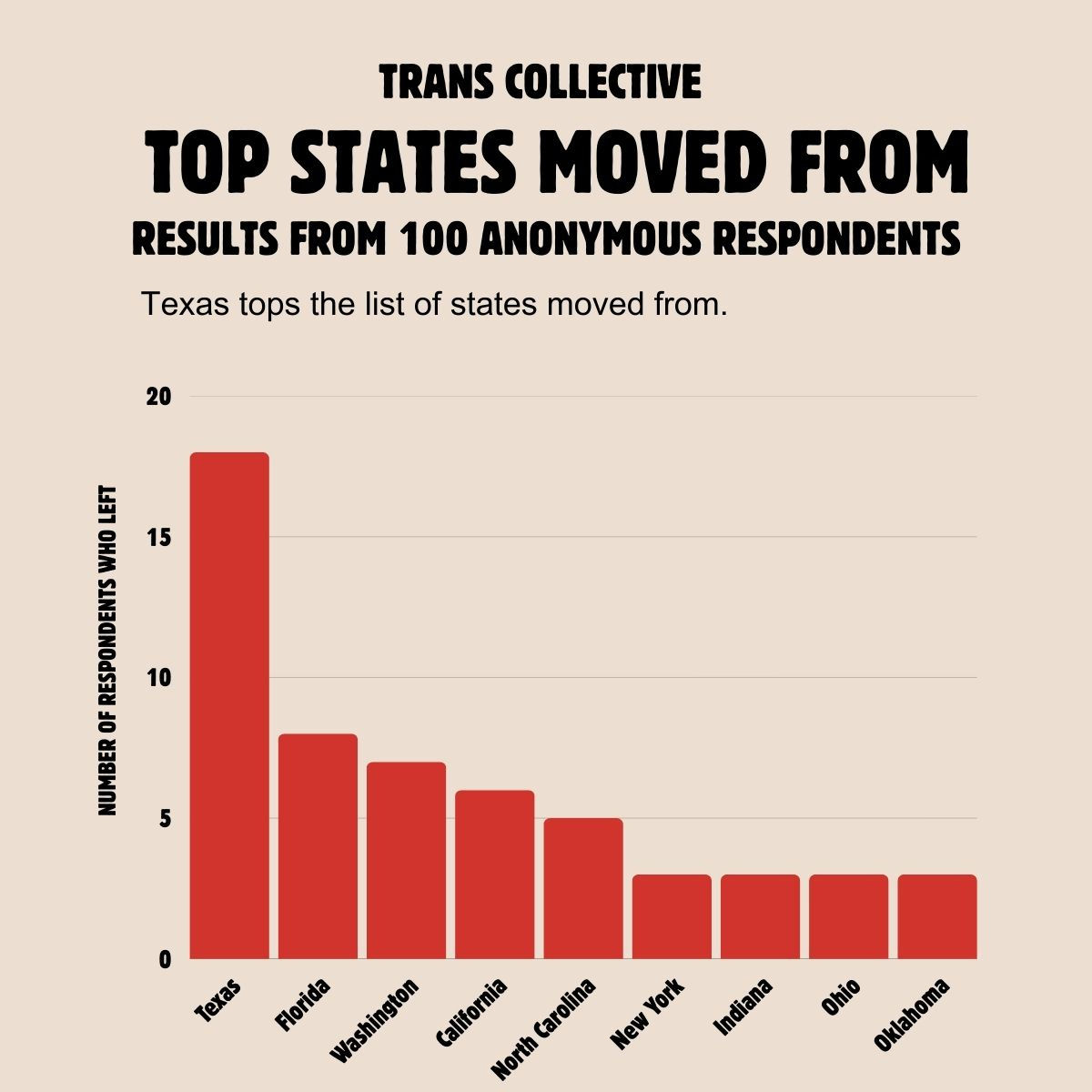 Texas topped the list for states most trans people migrated from. It scored low on the LGBTQ+ Equality scorecard, but not the lowest score, which went to Tennessee.